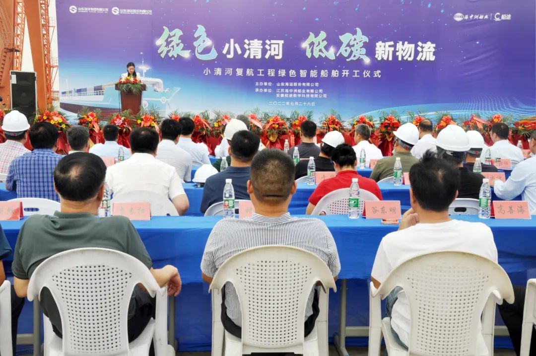 7月26日,由安徽船途科技有限公司和江蘇海中洲船業有限公司合作承建的小清河綠色智能船舶開工儀式在連云港舉行。山東海運股份有限公司黨委委員、副總經理付健,東省青島船舶技術服務中心主任趙慶亮,連云港市交通運輸綜合行政執法支隊副支隊長王松先,江蘇灌南半島臨港產業園區管委會主任王建出席儀式。